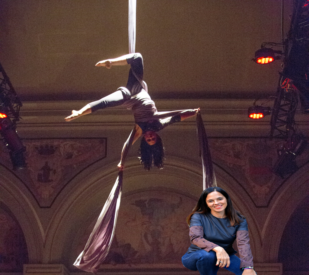 Mariana Fernández is a performing artist specializing in aerial acrobatics and contemporary dance. She began her professional formation in contemporary dance in Mexico before expanding her studies in Europe, completing advanced training at Cirko Vertigo in Italy and Arc en Cirque in France.