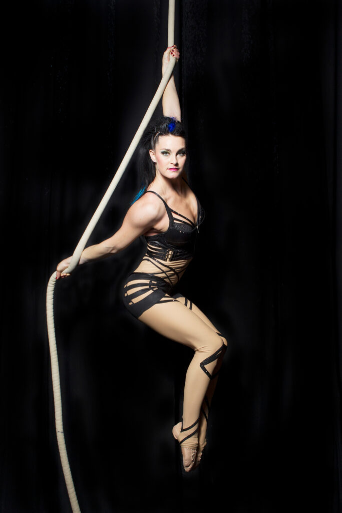 Power, passion and charisma drive the art and style of Lisanna Paloma’s Corde Lisse act. Performing in Germany’s exciting Flic Flac Zircus Festival, Cirque du Soleil’s KÁ, TORUK and LIGHT, with The San Diego Symphony Orchestra, and world famous singer/actor MeatLoaf, Lisanna’s strong technique and talent has led her to perform around the world at a prominent level in numerous disciplines in addition to her speciality of Corde Lisse.