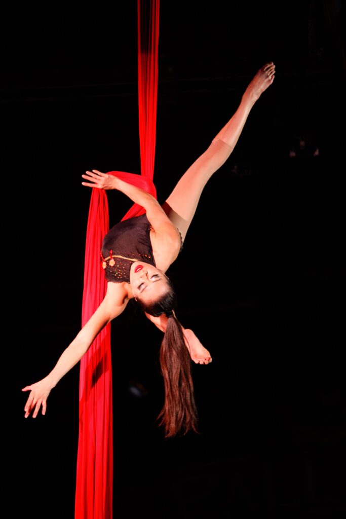Mizuki is a freelance circus artist who specializes in Aerial Silks, Aerial Straps, and Aerial Duo Straps.
